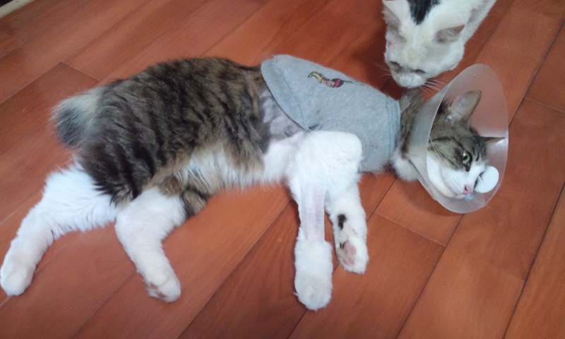面会に行くと、服を着せられ、点滴を打っているトロ。